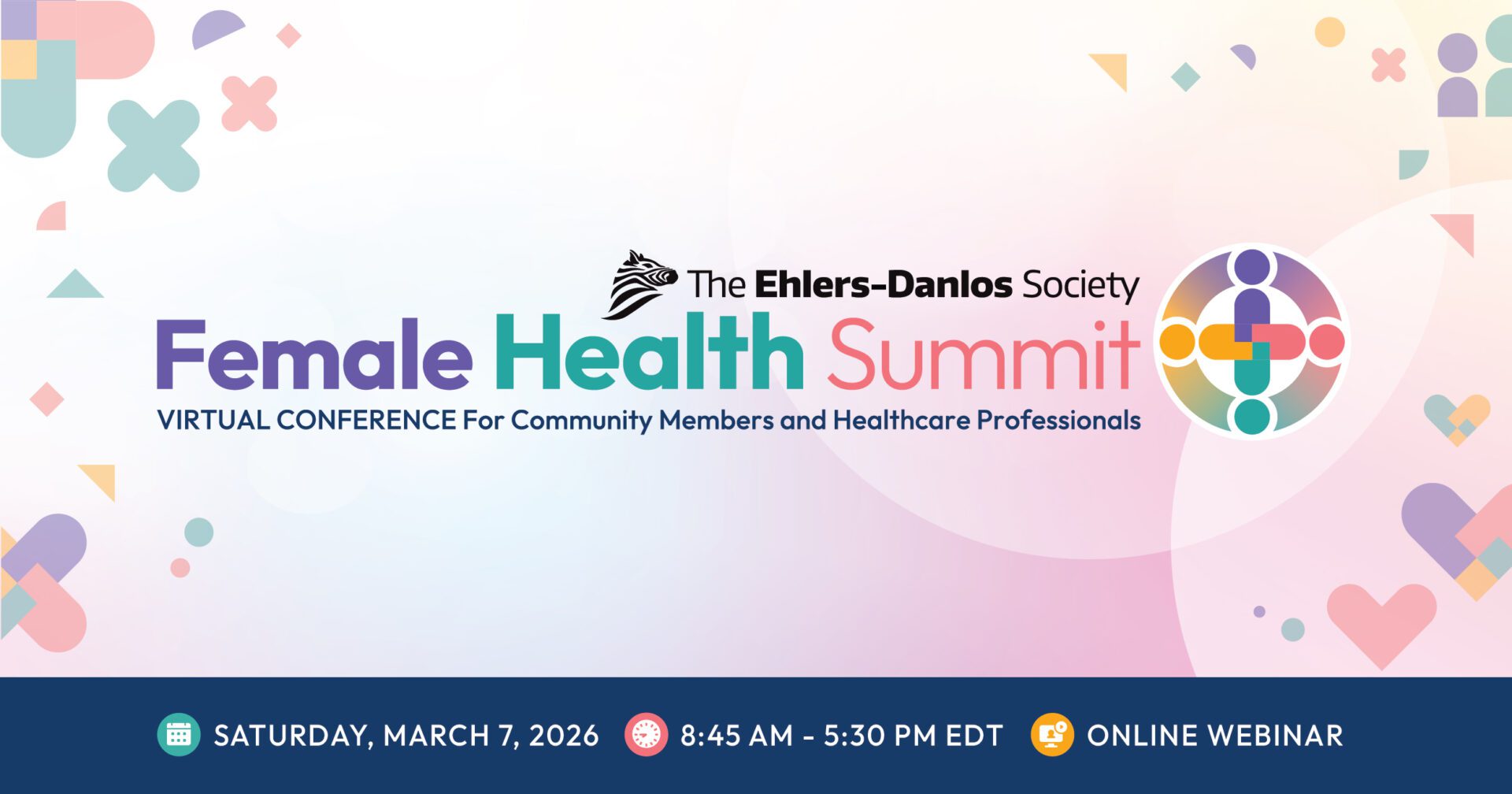 Join The Ehlers-Danlos Society for the Female Health Summit, a virtual event happening on March 7, 2026. Tailored for individuals with Ehlers-Danlos syndromes (EDS) and hypermobility spectrum disorders (HSD), as well as the healthcare providers and caregivers who support their care, this summit brings together expert insights, real-world experiences, and compassionate guidance to ensure participants feel informed, supported, and empowered.